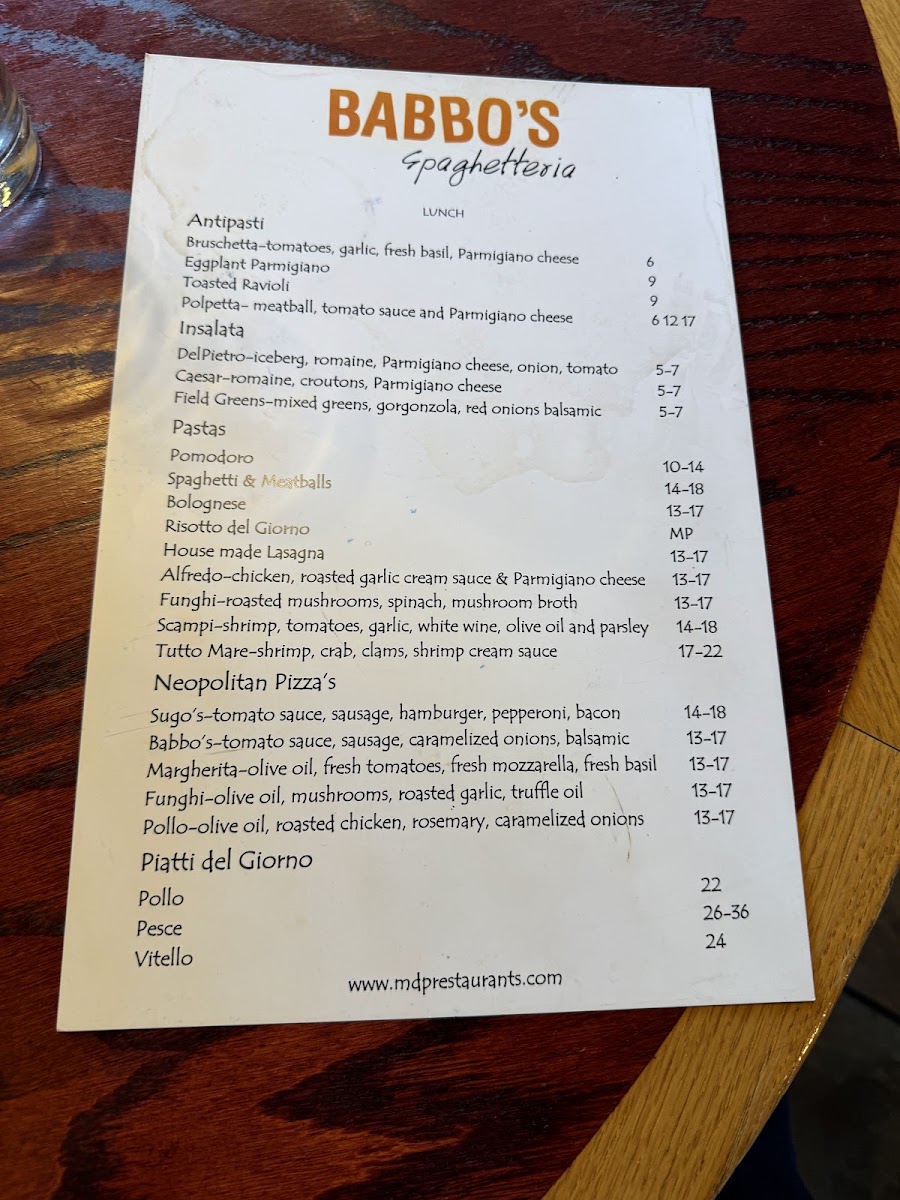 Babbo's menu features an enticing array of dishes. Start with tantalizing Antipasti options like marinated olives and cheese or savory eggplant Parmigiano. Their handmade pastas, particularly the Tuttomare with seafood and Funghi with roasted mushrooms, are delights for the taste buds.